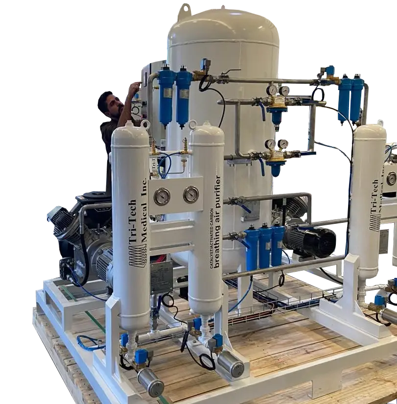 Los sistemas de compresores de aire medicinal y las plantas de compresores de aire medicinal de Tri-Tech Medical Inc. son sistemas completamente empaquetados que están diseñados para cumplir con los requisitos de aire respirable de las instalaciones de atención médica. Los sistemas de compresores de aire médicos de Tri-Tech Medical Inc. utilizan la tecnología más actual del mercado y garantizan el cumplimiento de los estrictos estándares de calidad que espera la comunidad médica actual.