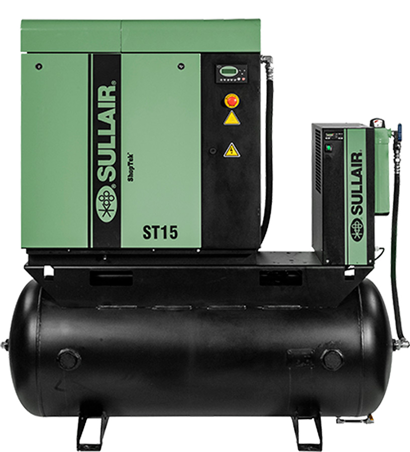 Sullair compresores de aire de taller ShopTek® redefine las normas de la industria con un diseño simple que proporciona una confiabilidad excepcional y muy bajo mantenimiento.